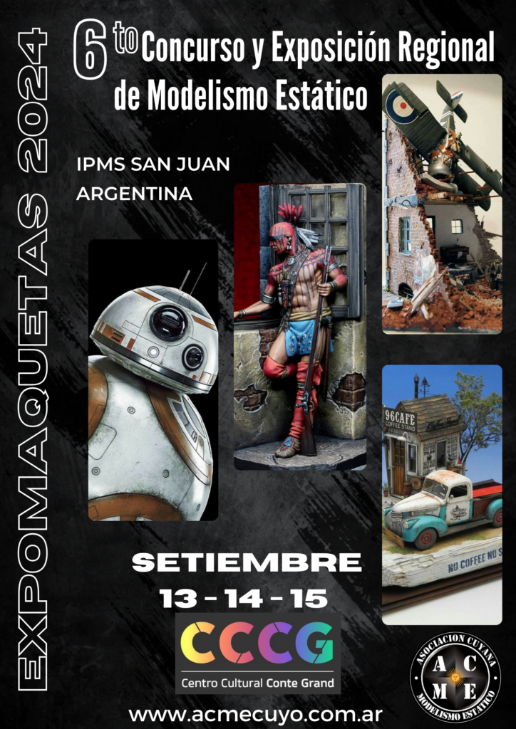 En el marco del evento ANIBASHING dedicado al coleccionismo, anime, modelismo, cosplayer y todo lo relacionado con los diferentes hobbies, se desarrollará en la Provincia de San Juan el 6to Concurso Regional de Modelismo Estático. Actividades Fecha: 13, 14 y 15 de Setiembre de 2024 El cronograma puede sufrir cambios. Viernes 13: 9:00 hs. Apertura del Concurso,